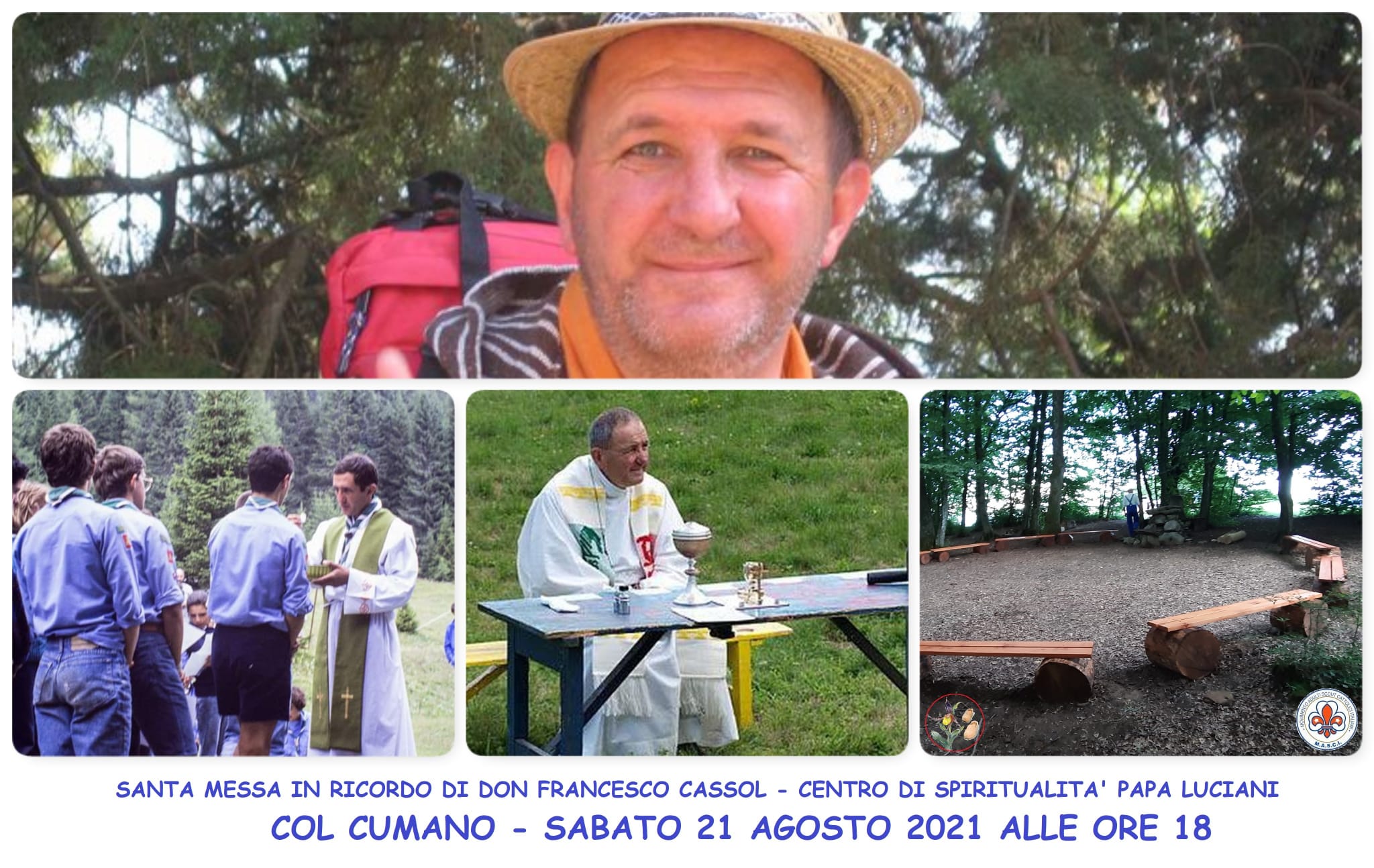 * Per iniziativa del MASCI, sabato 21 agosto 2021, verrà ricordato l'11° anniversario della tragica morte di don Francesco Cassol. Per 15 anni – dal 1983 al 1998 - don Francesco fu animatore e poi direttore del Centro Papa Luciani. Nel fusto dell’altare in pietra…
